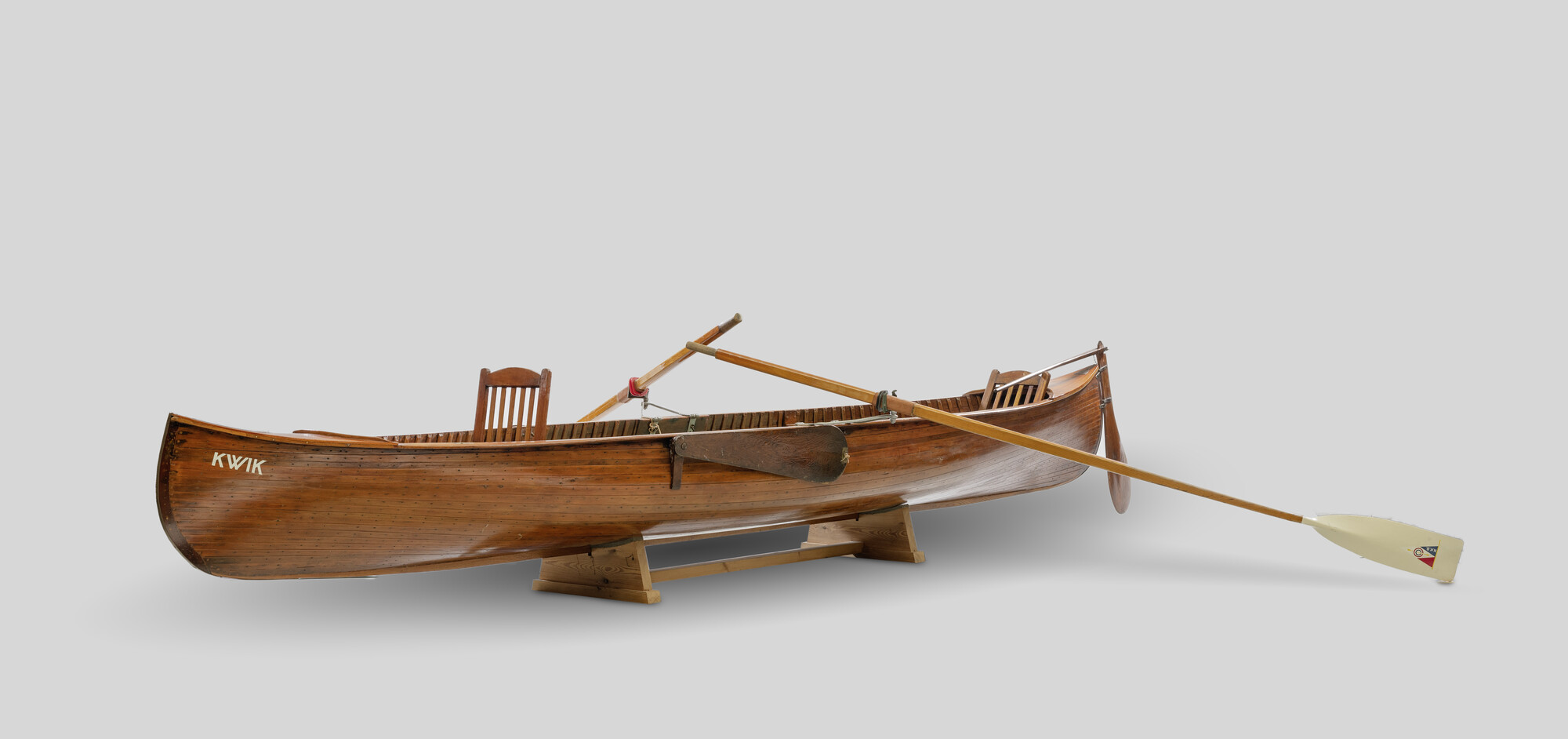 BeschrijvingEenpersoons outrigged C1, Canadese kano 'Kwik' met zeiltuig.