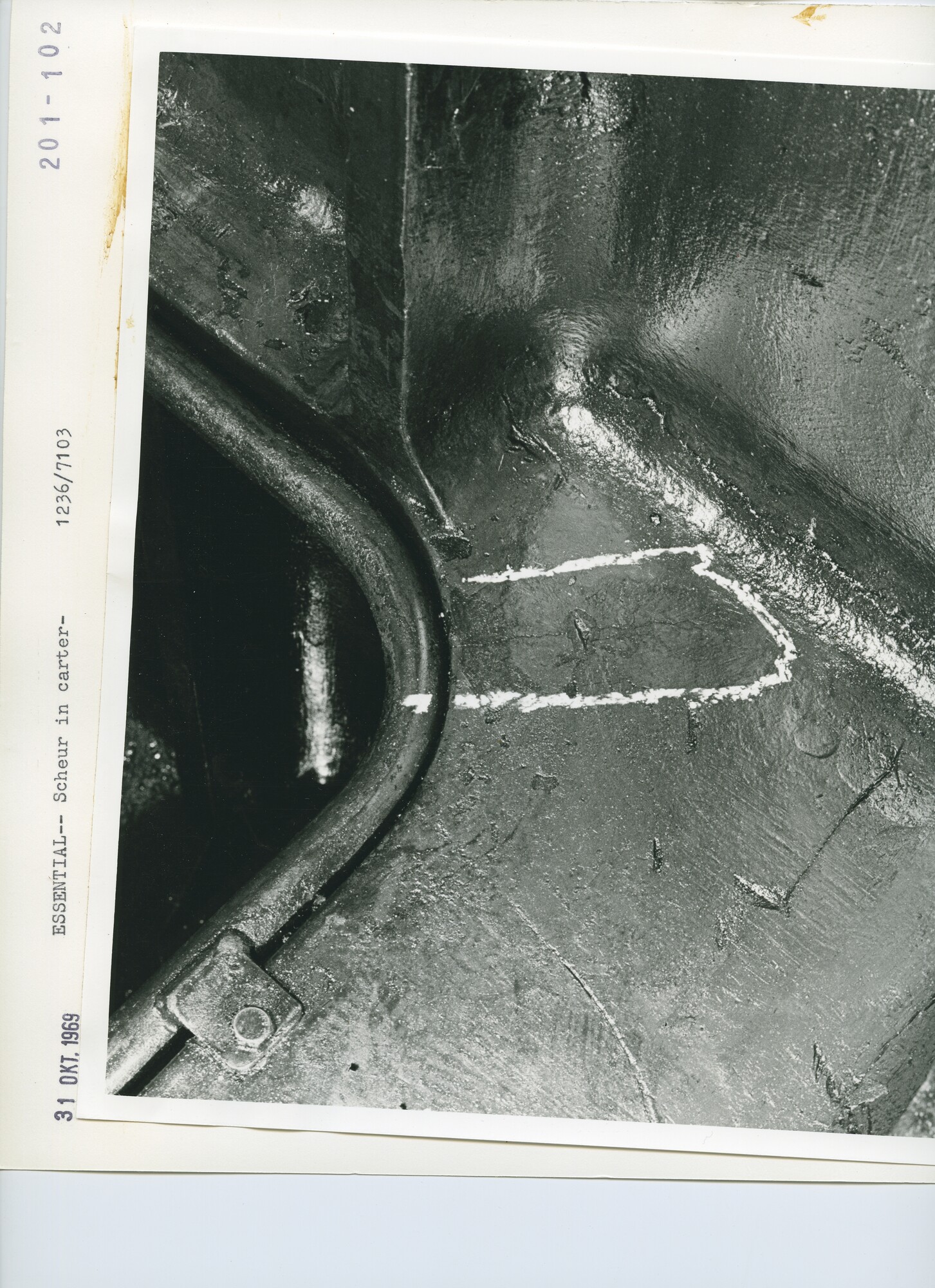 BeschrijvingFoto van schade aan werktuigen in de motorkamer van de "Essential".
