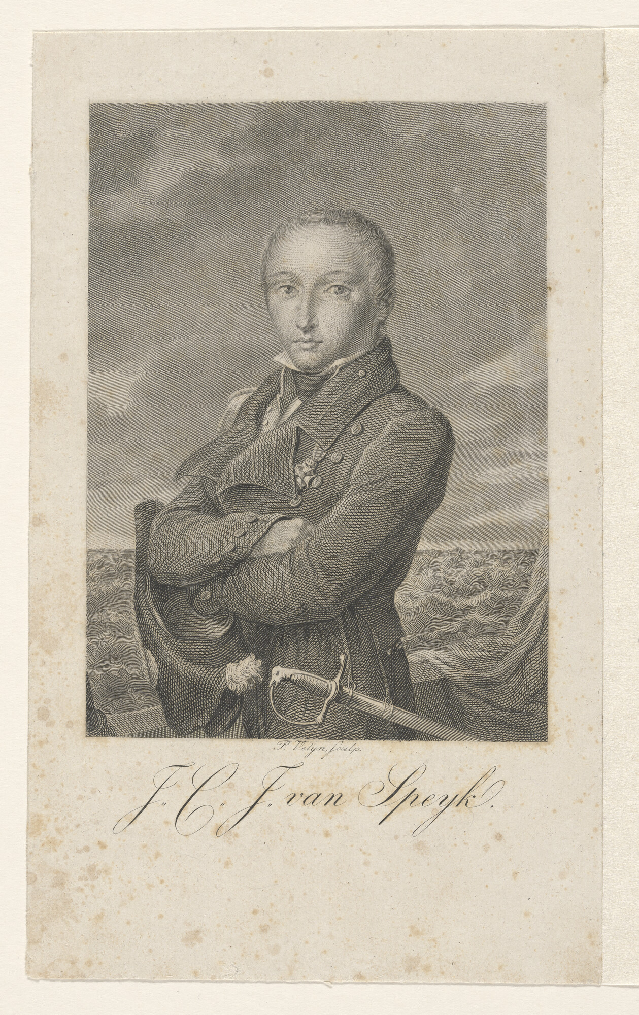 BeschrijvingPortret van J.C.J. van Speyk te halver lijve, met over elkaar geslagen armen.